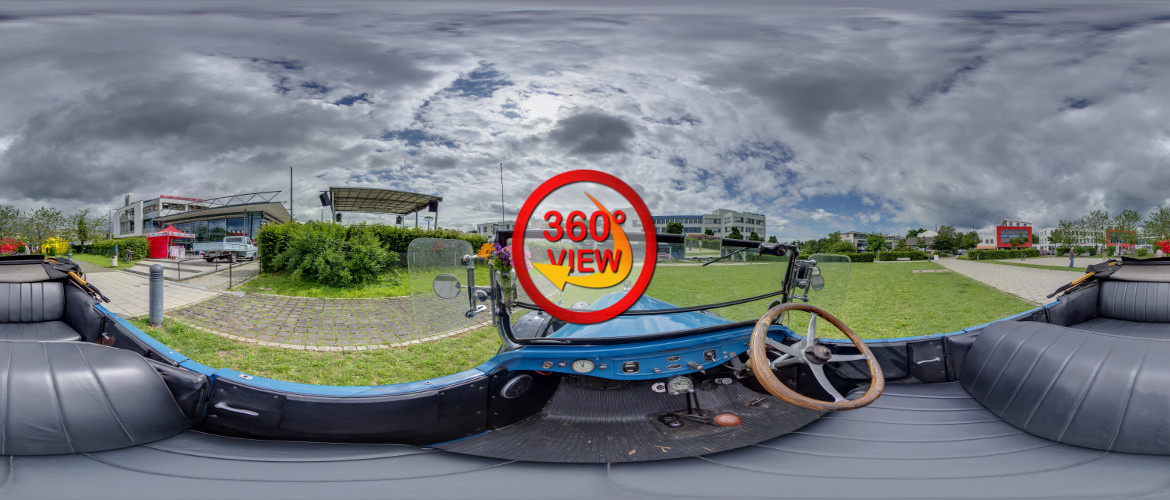 Anlässlich der Veranstaltung „Classic meets Classic“ konnte ich das schicke und sehr alte Automobil ausmachen. Wie ein Spielzeug mutete es einem an, wenn man davor stand. Mit Einverständnis des Ausstellers durfte ich meine Panorama-Ausrüstung in dem Fahrzeug aufstellen und ein Bild aus der Sicht des Beifahrers machen. Der rechts gesteuerte Wagen ist sogar noch fahrbereit.