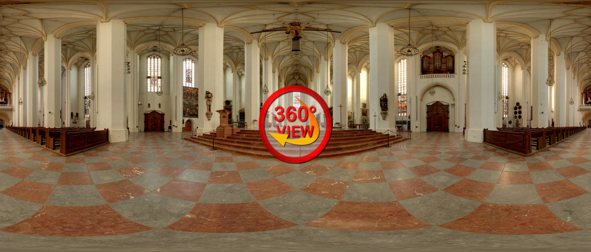 Mit Genehmigung des Erzbistums München-Freising durfte ich dort ein 360 Grad Panorama aufnehmen. Die Bilder fertigte ich in Dreier-Belichtungsreihen an (eine Aufnahme normal, eine über- und eine unterbelichtet). Die Fotos setzte ich über die Funktion „Exposure Fusion“ in der Stitchingsoftware zusammen und erhielt so einen sehr großen Dynamikumfang im Gesamtbild.