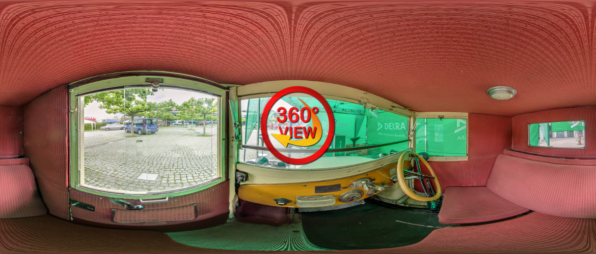 Anlässlich der Veranstaltung „Classic meets Classic“ konnte ich das schicke und sehr alte Automobil ausmachen. Wie ein Spielzeug mutete es einem an, wenn man davor stand. Mit Einverständnis des Ausstellers durfte ich meine Panorama-Ausrüstung in dem Zweisitzer aufstellen und ein Bild aus der Sicht des Beifahrers machen. Der rechts gesteuerte Wagen ist sogar noch fahrbereit.