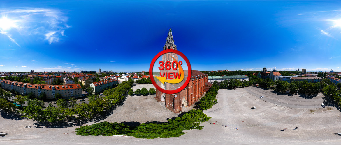 Mit Genehmigung des Erzbistums München-Freising durfte ich dort ein 360 Grad Panorama aufnehmen. Die Bilder fertigte ich in Dreier-Belichtungsreihen an (eine Aufnahme normal, eine über- und eine unterbelichtet). Die Fotos setzte ich über die Funktion „Exposure Fusion“ in der Stitchingsoftware zusammen und erhielt so einen sehr großen Dynamikumfang im Gesamtbild.